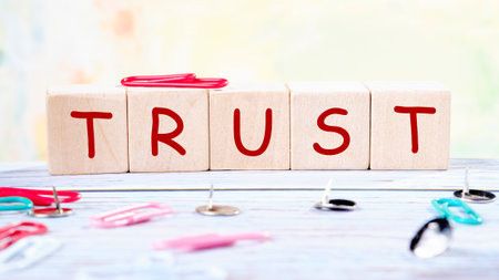 Simple yet powerful representation of the word trust using letter blocks, highlighting concepts of connection and belief in relationships. Ideal for articles on integrity.
