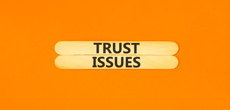 Trust issues symbol. Concept word Trust issues on beautiful wooden sticks. Beautiful orange paper background. Business trust issues concept. Copy space.