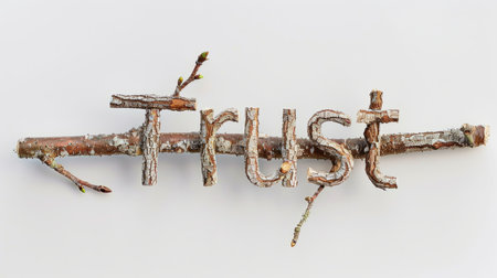 A serene image showcasing the word TRUST spelled out with wooden blocks against a soft-focused nature background, symbolizing connection and reliability.