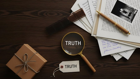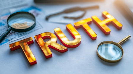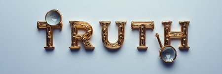 Unveiling the Truth Golden Letters, Magnifying Glasses, and Documents on a White Background