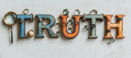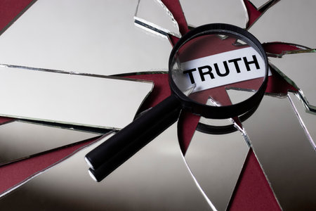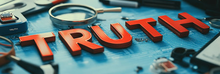 Word TRUTH Spelled with Magnifying Glasses, Emphasizing Scrutiny Truth Finding, Investigation