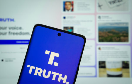Dhaka, Bangladesh - 17 March 2025: The logo of the Truth Social is displayed on a smartphone screen, and the website is visible on a computer screen in the background.