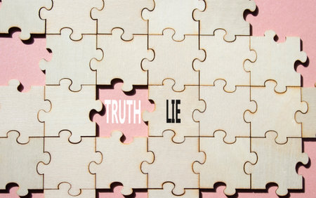 Truth or Lie symbol. Concept word Truth or Lie on wooden puzzle. Beautiful pink background. Business and Truth or Lie concept. Copy space