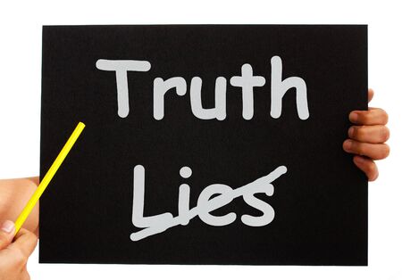 Message Truth on illuminated board. Truthfulness concept with text. Daylight from window. Room interior. Black letters Truth on white wallpaper wall.