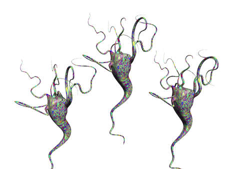 Brain-eating amoeba infection, naegleriasis. Trophozite, infectious form of the parasite Naegleria fowleri, 3D illustration