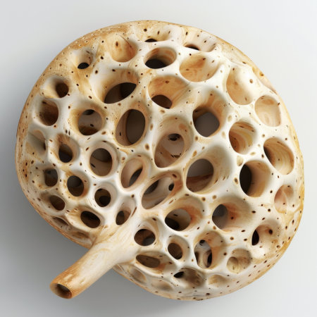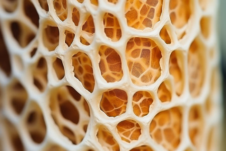 Detailed view of human bone tissue's spongy texture and internal organ arrangement, Ai Generated.