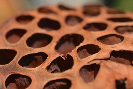 Dried lotus pods create a background pattern of texture/Dried lotus pods close up