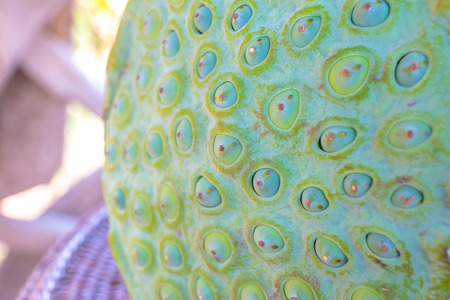 Indian Lotus seeds green Macro Abstract Horizontal on white background