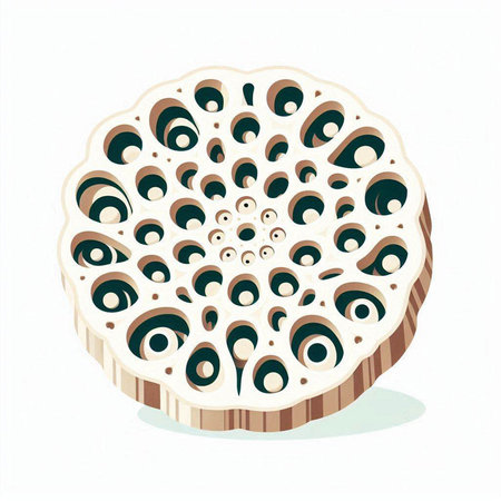 Lotus Root Sliced lotus root falling into a subtle white splash, exotic and fresh.