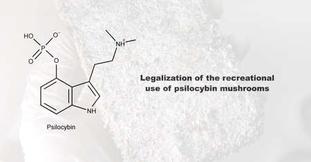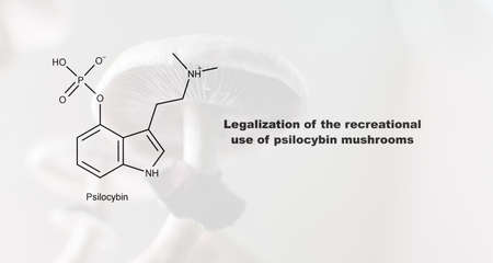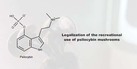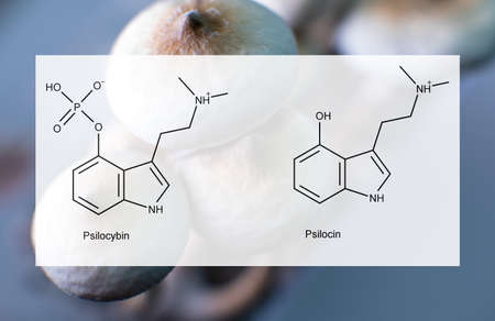 psilocin mushrooms formula. Legalization Medical psychedelic. Psychoactive natural drug.