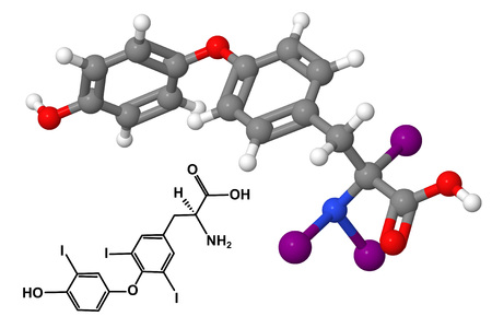 Triiodothyronine hormone molecule and chemical structure isolated on white background
