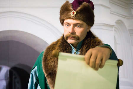 Kyiv, Ukraine 09.01.2020: A wax sculpture of the Bohdan Khmelnytsky