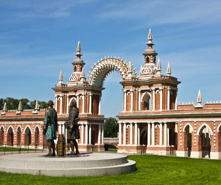 MOSCOW - JUNE 20, 2010: entrance to palace Tsaritsino, has been built for queen Ekaterina Second Great in 18 century by arcitect Kazakov.