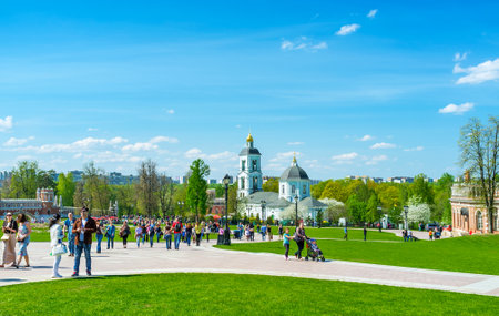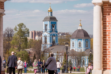 MOSCOW, RUSSIA - MAY 10, 2015: The people walk across the square to the Church of Our Lady Life-Giving Spring in Tsaritsino complex, on May 10 in Moscow.