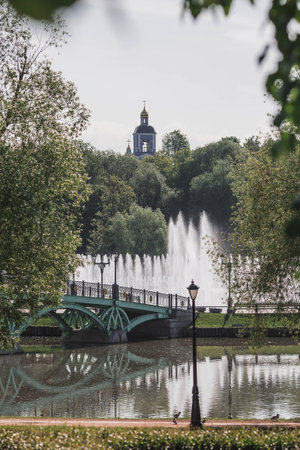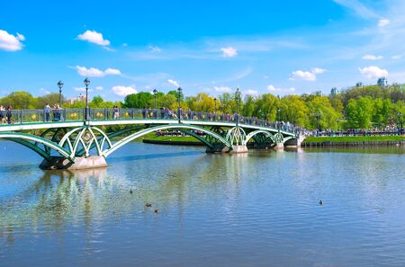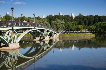 Moscow, Russia - June 08. 2016. The Footbridge across the pond in the estate of Tsaritsyno Museum