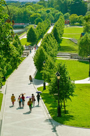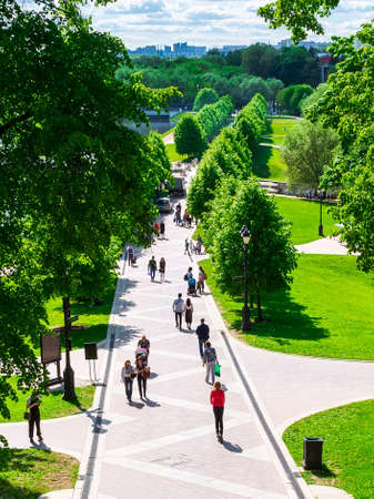MOSCOW, RUSSIA - MAY 25, 2021: View of Vozdushnaya street from the Figured bridge in Tsaritsyno park