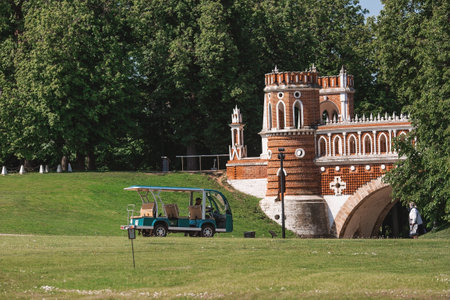 Guests stroll through Tsaritsyno Park, enjoying historic buildings and lush greenery, perfect for relaxation and exploration.