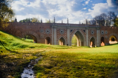Moscow, Russia - June 08. 2016. The stone bridge in the estate of Tsaritsyno Museum