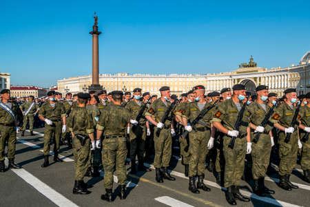 Saint-Petersburg.Russia.June 17, 2020.Rehearsal of the Victory Parade on Palace square in Saint Petersburg during the covid-19 pandemic.