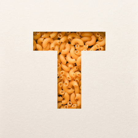 Font design, Abstract alphabet font with elbow macaroni, realistic food typography - T