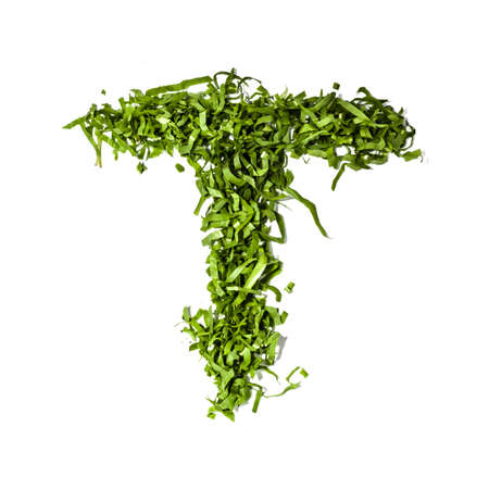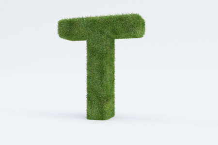 A 3d rendering of green grass letter T isolated on white background - concept of early education