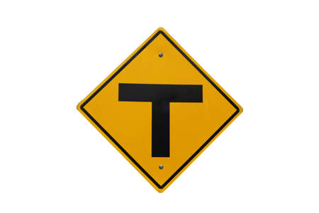 Wooden tangram puzzle as English alphabet letter T shape on white background