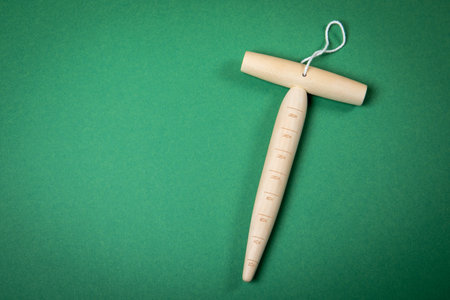 PLANTING GARDEN DIBBER. Green background with copy space.PLANTING GARDEN DIBBER. Green background with copy space.