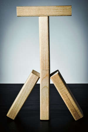 Mast of wooden blocks with a crossbar. Business balance concept.