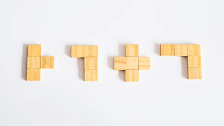wooden cube with plus icon, addition or add more. Add value concept. Improvement or addition to something that makes it worth more. Positive thinking or personal growth.