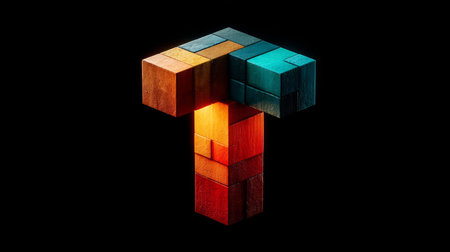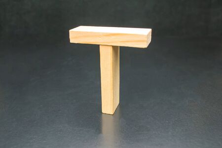 Wood blocks letter T on a black background