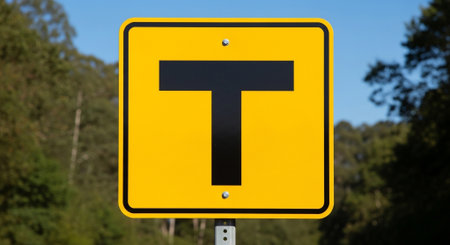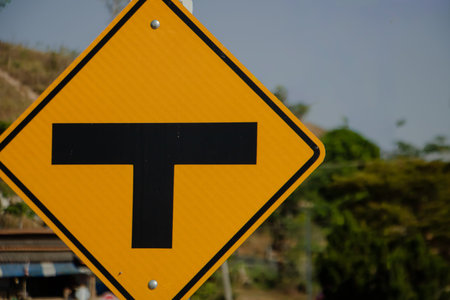 T junction road traffic sign at countryside