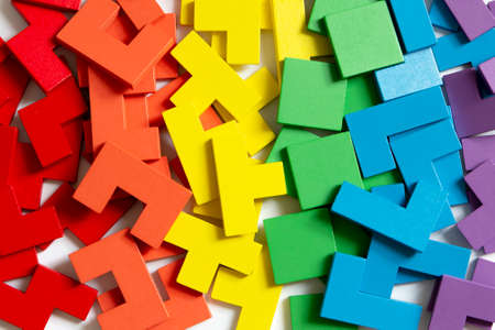 LGBTQ background , wood block puzzle with rainbow color shade
