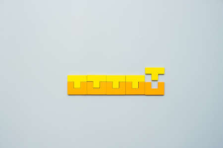 Wooden tangram puzzle as English alphabet letter T shape on white background