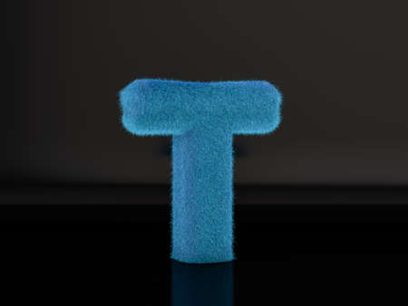 Fur letter T on a black background. 3d illustration.