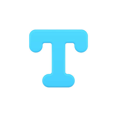 Letter T 3d icon. Blue typographic text symbol