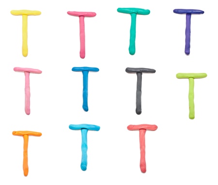 set of one letter made from color clay islated on white background