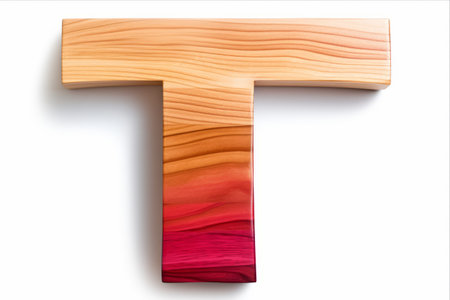 Vibrant Wooden Letter 'T' with Drop Shadow: Captivating Colours on White Background