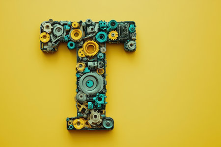 The letter T is made up of many gears