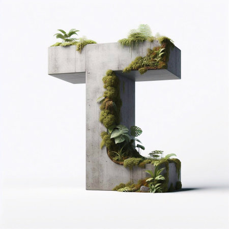 T letter shape 3D Lettering That Blends Concrete With Nature. AI generated illustration