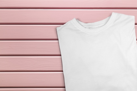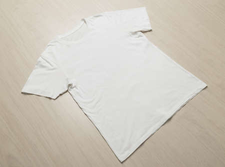White folded t-shirt template on a wooden background