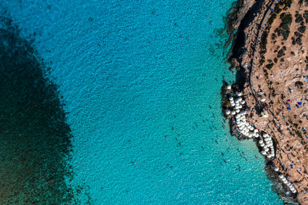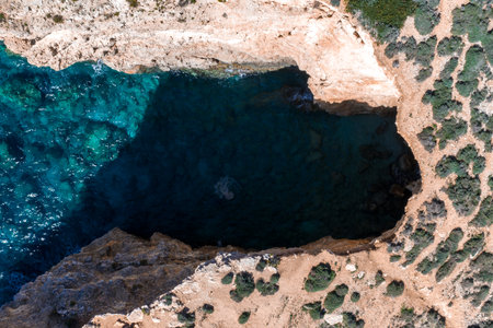 Aerial view of sea cave on Comino coast near the Blue Lagoon, Malta