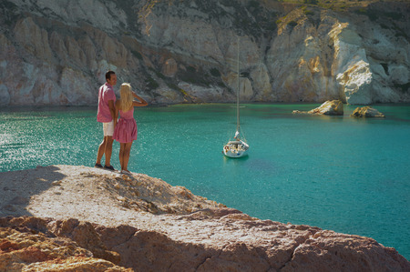 Romantic couple on the beach and yacht