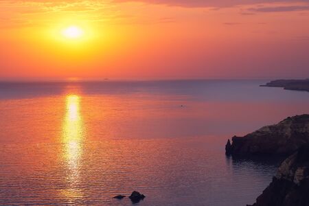 Dramatic sunset at cape fiolent with rocks and grass at foreground. Crimea