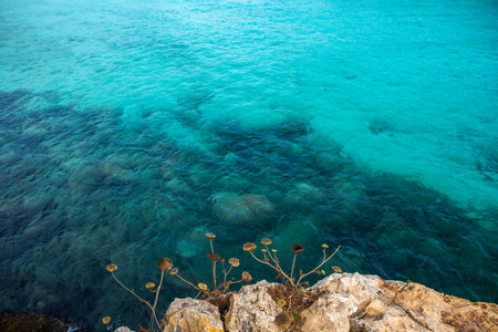 turquoise sea and rocky shore view from the lover bridge in Ayia Napa, Cyprus