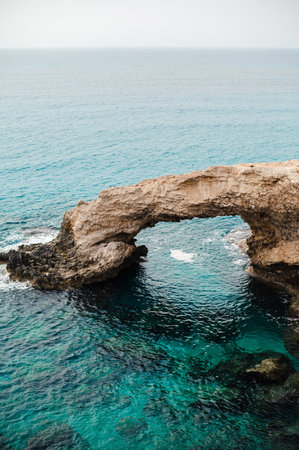 Beautiful natural rock arch near of Ayia Napa, Cavo Greco and Protaras on Cyprus island, Mediterranean Sea. Legendary bridge lovers.