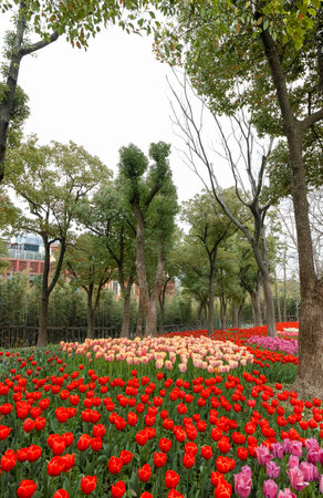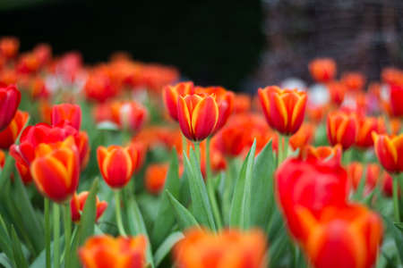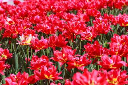 Istanbul, Turkey - March 06, 2016: Red Tulips beautiful bouquet of tulips. tulips in spring colourful during Tulip festival in Istanbul