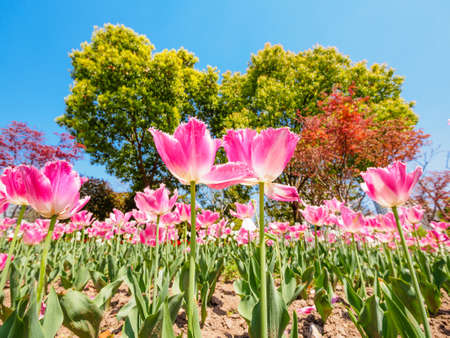 Tulip. Beautiful field garden of tulips. colorful tulips. tulips