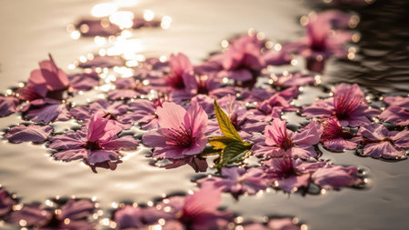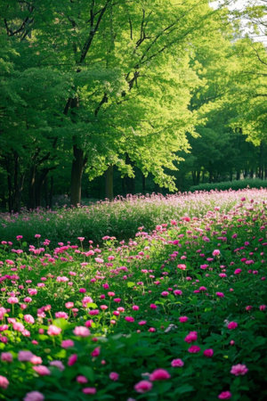 Colorful petals blanket the ground creating a vibrant natural carpet in a serene setting