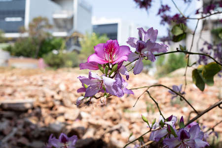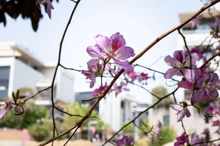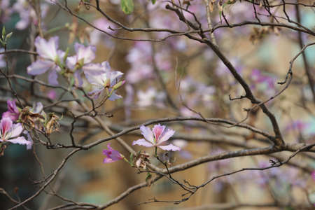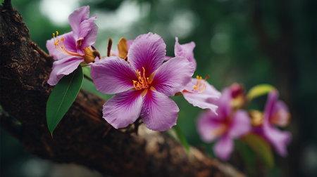 Exquisite pink Bauhinia flower blooming on a branch in vibrant garden