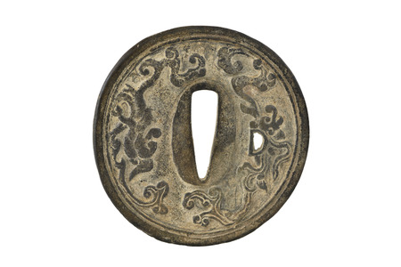 Tsuba : hand guard of Japanese sword with white background